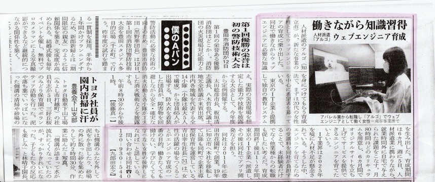 新三河タイムスに記事が掲載 2022年6月10日版 新三河タイムスに記事が掲載されました! 女性の活躍の場をつくりたい!! 創業当初から変わらない思いを抱くアルゴが、 ウェブエンジニア育成という新たな事業を立ち上げました。 「働きたくても働けない、学びたくても学べない女性の後押しになれば」と考えていますので、 興味がある方は、お問い合わせください!