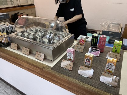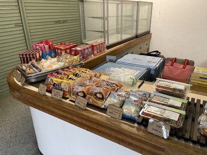 おにぎり、パン、デザートにお菓子、ドリンクも用意しておりますので、