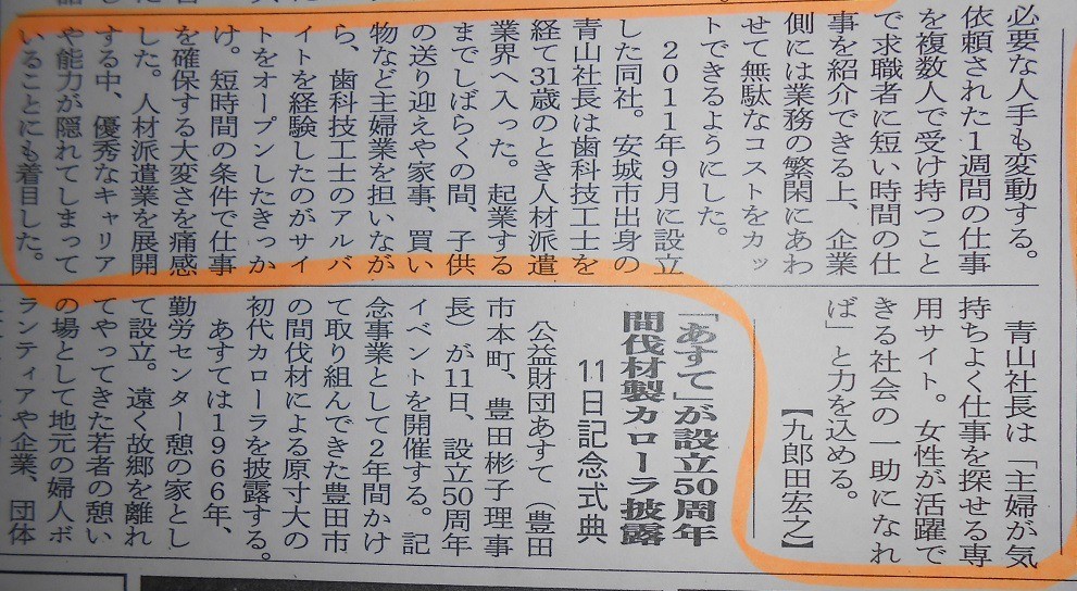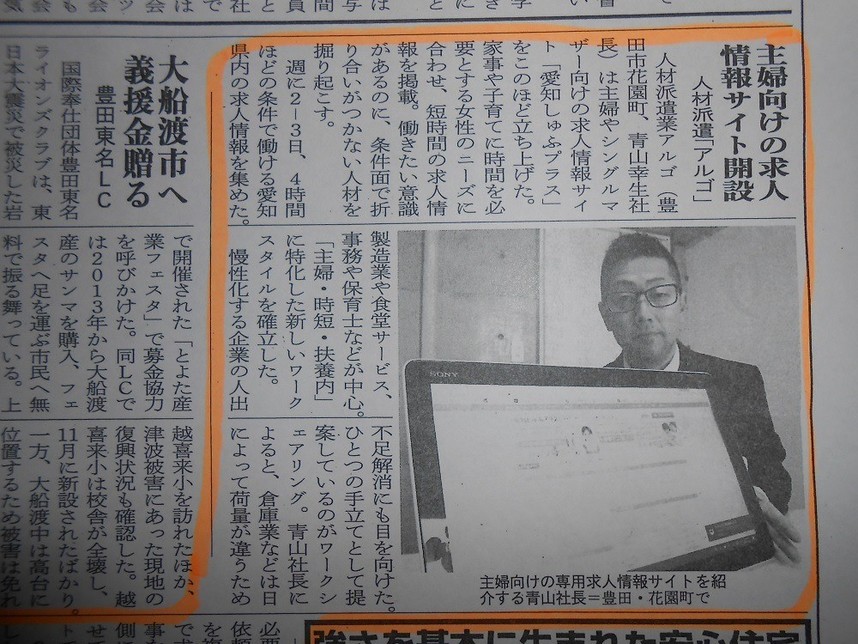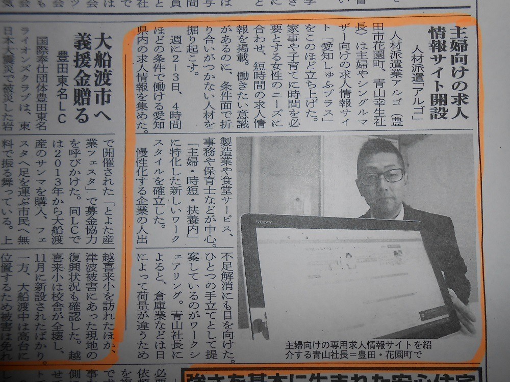 求人サイト【愛知しゅふプラス】についての記事が掲載されました。